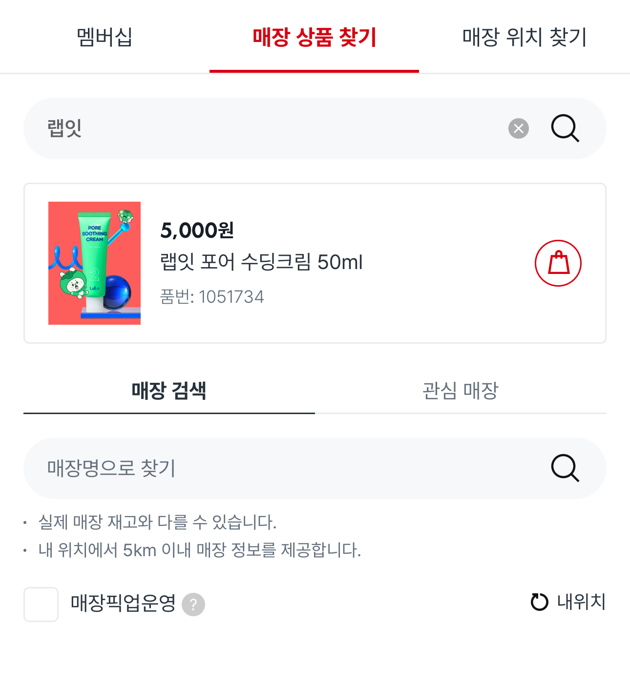 3. 상품 선택 후 매장 재고 확인 탭 클릭