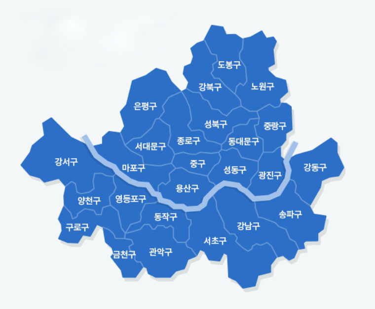 서울시의 각 구청은 총 25개로 조직도를 통해 동주민센터를 확인하실 수 있습니다.