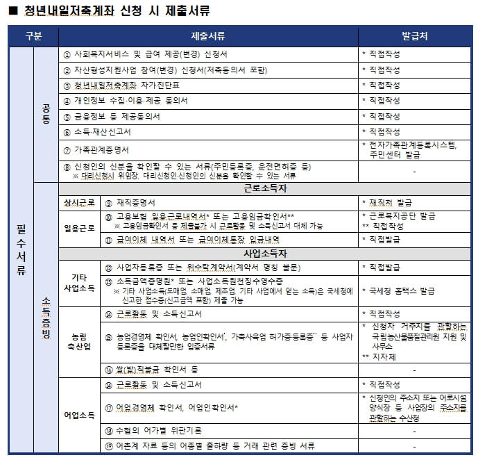 복지로(www.bokjiro.go.kr), 자산형성포털(hope.welfareinfo.or.kr)을 통해 필수 제출 서류 확인 및 양식 다운로드 가능