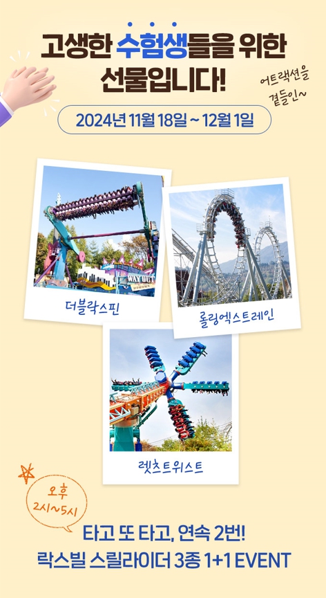※ 서울랜드에서는 12월 말까지 수험생 본인과 동반 2인 61% 할인 ※